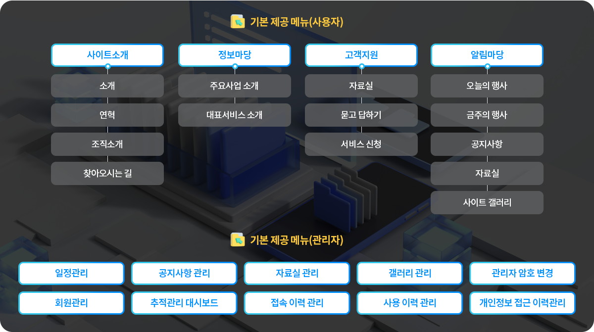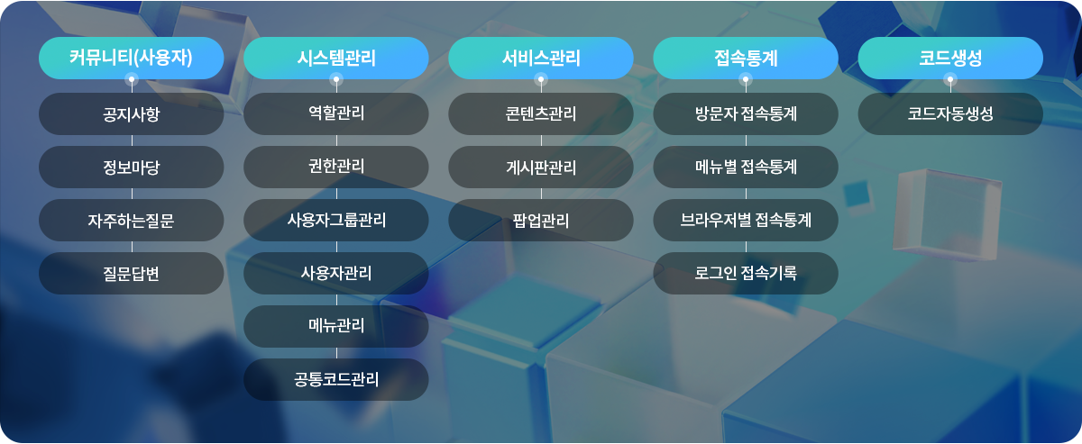 검증된 공통기능(메뉴관리 ) 적용으로 관리자 기능 설계 및 구현 리소스 최소화