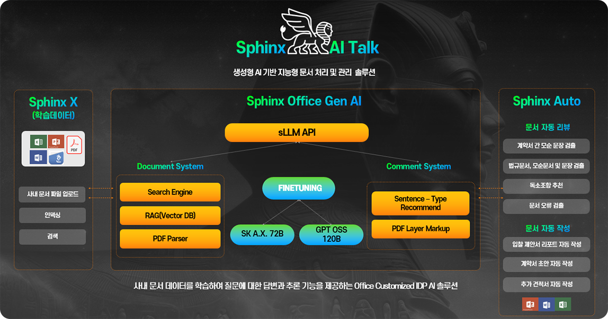 Sphinx AI Talk는 기업의 오피스 문서를 AI로 학습하고 자연어로 대화하며 정보를 검색할 수 있는 플랫폼입니다.