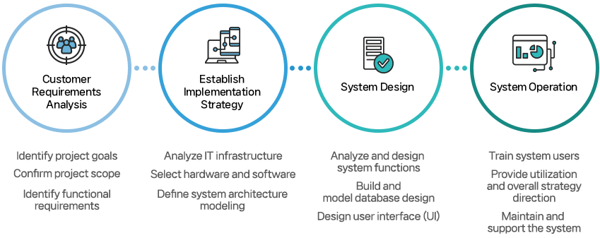 encompassing everything from information system analysis and design to development and post-management, tailored to your business strategy, enabling you to flexibly respond to changing business