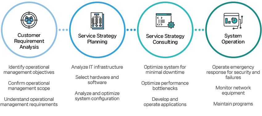 Through hardware management of developed and operational IT systems, clients can expect cost efficiency and quality improvement. [System management, system operation, system enhancement, facility and environment management] -