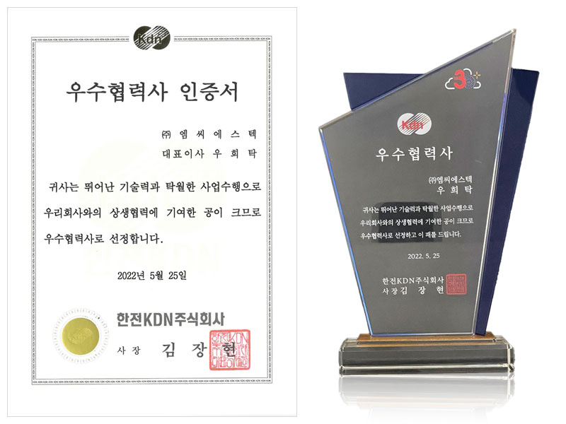 MCST was recognized for its technology and services and was selected as an excellent partner by KEPCO KDN in 2022.