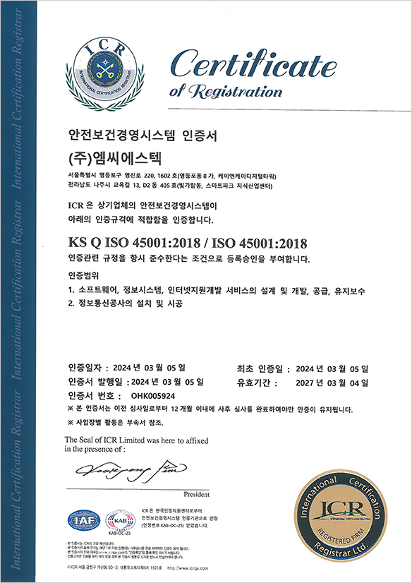ISO 45001 (Occupational Health and Safety Management System) is an international standard that defines requirements for systematically